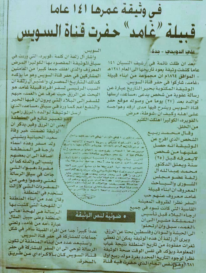أرض الذكريات On Twitter جريدة عكاظ عام 1412 تنشر وثيقة وتشير فيها إلى مشاركة رجال من قبيلة غامد في حفر قناة السويس عام 1865م