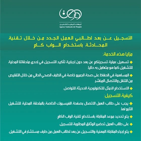 الوكالة الوطنية للتشغيل تسجيل طالبي العمل الجدد من خلال تقنية المحادثة عن بعد Anem