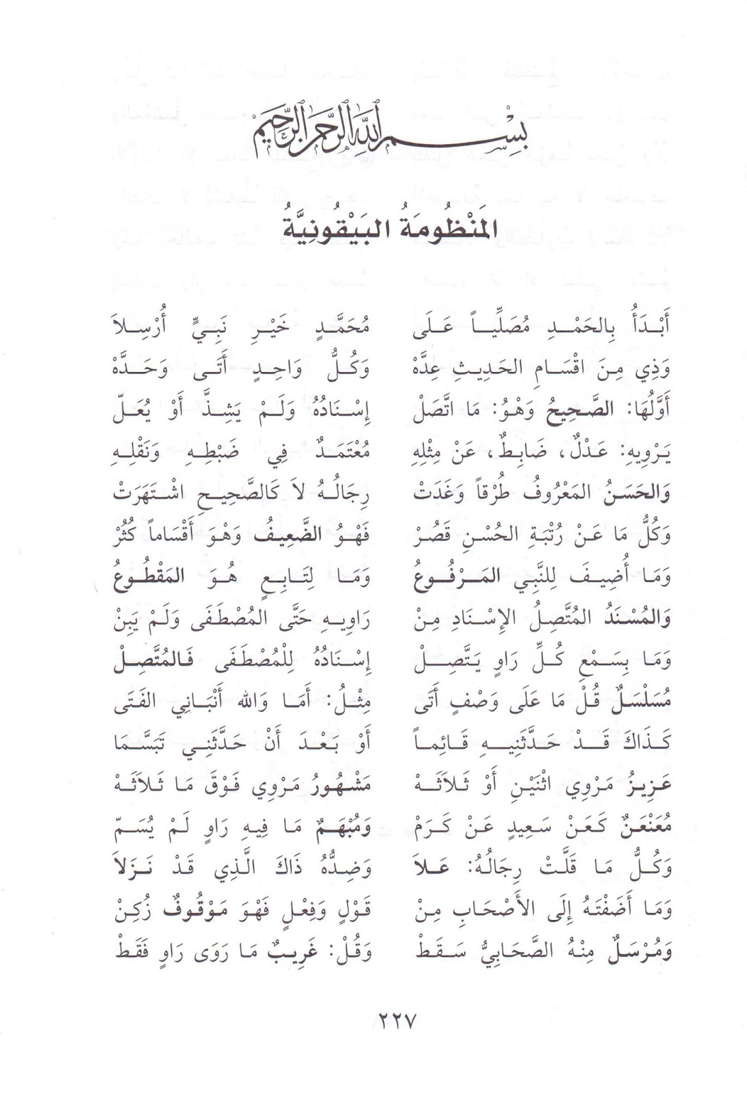 متن المنظومة البيقونية الأثري طريق الإسلام